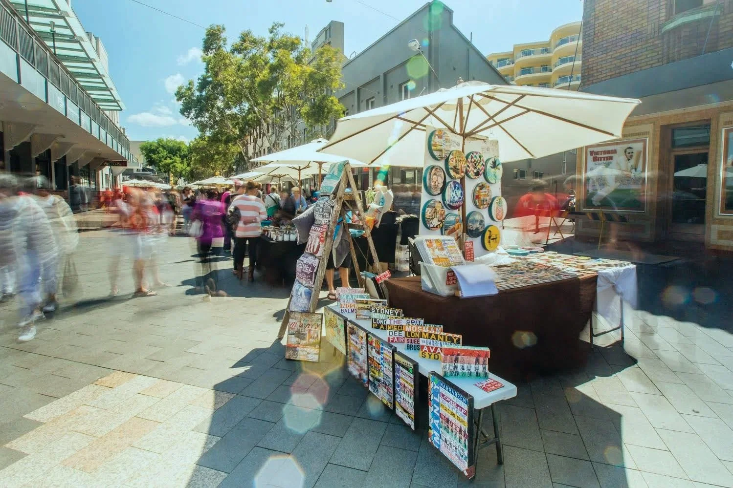 On both weekend days Sydney Road is home to the Manly Marketplace, an open air market selling knick knacks, snacks, local art, jewellery, candles, hats and grocery items.